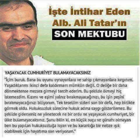 fetö zulmü yüzünden intihar eden Albay Ali Tatar'ın son mektubu